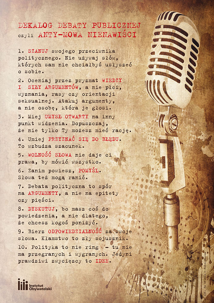 1. SZANUJ swojego przeciwnika politycznego. Nie używaj słów, których sam nie chciałbyś usłyszeć o sobie.